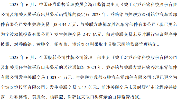 尽管这是乔路铭首次申报IPO,但其与主办券商东方证券的合作深度值得玩味。在新三板挂牌期间,东方证券便持续督导。然而,就在督导期内,公司发生了前述高达2.47亿元的关联方资金往来未及时审议披露,导致收到警示函。东方证券作为持续督导券商,为何未能及时发现并规范这笔发生于2023年的巨额关联交易?直到监管问询函下发才被动披露?这反映出保荐机构在公司治理督导上的“滞后性”,而这种滞后性在乔路铭复杂的家族关联交易背景下,可能埋藏着更多未被曝光的资金拆借或利益输送渠道。