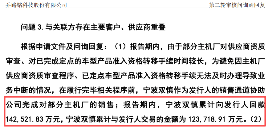 通过数据测算可以发现,按照制造业通用的13%增值税率计算,123.72亿元的交易额对应的销项税额约为16.08亿元,加上约2.7亿元的期初应收款,恰好可以拼凑出18.8亿元的差额。这一数据吻合得过于“完美”,反而暴露了其操作实质:宁波双慎作为通道,完全充当了乔路铭的“资金清算中心”。这种模式下,乔路铭虽然避免了坏账,但其对宁波双慎的依赖,实质上是用关联方的信用替代了客户信用。一旦宁波双慎这个“二传手”出现问题,乔路铭的收入闭环将瞬间断裂。